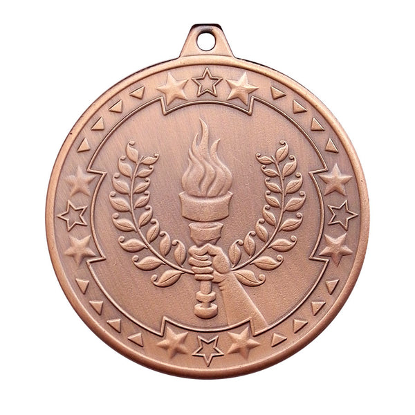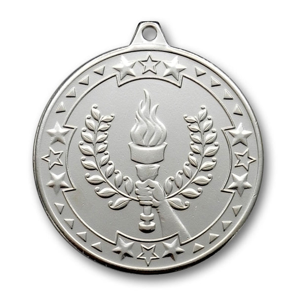 A high quality 50mm diameter embossed metal medal with optional engraving on the back of the medal.