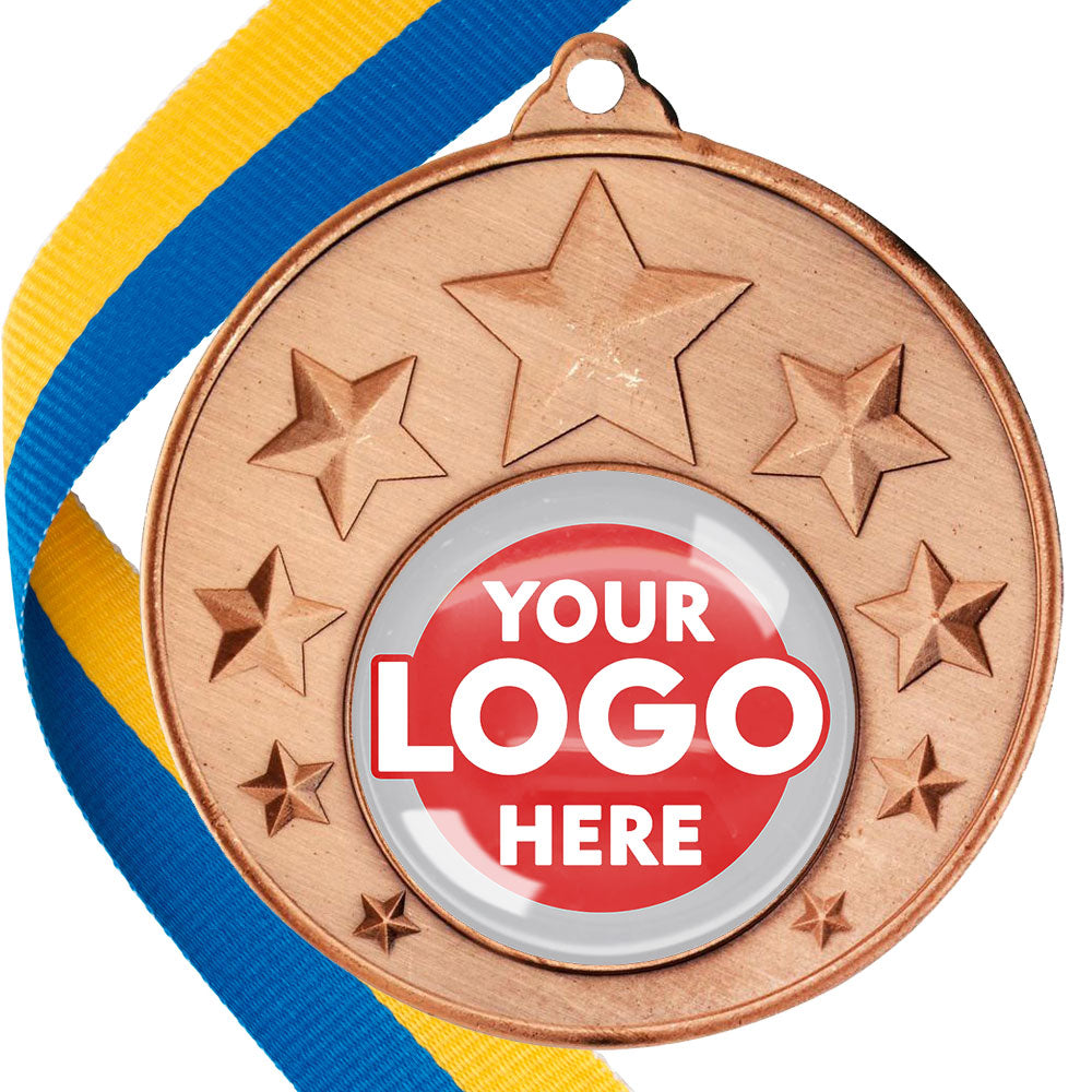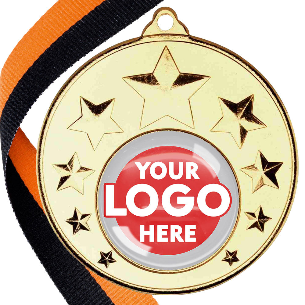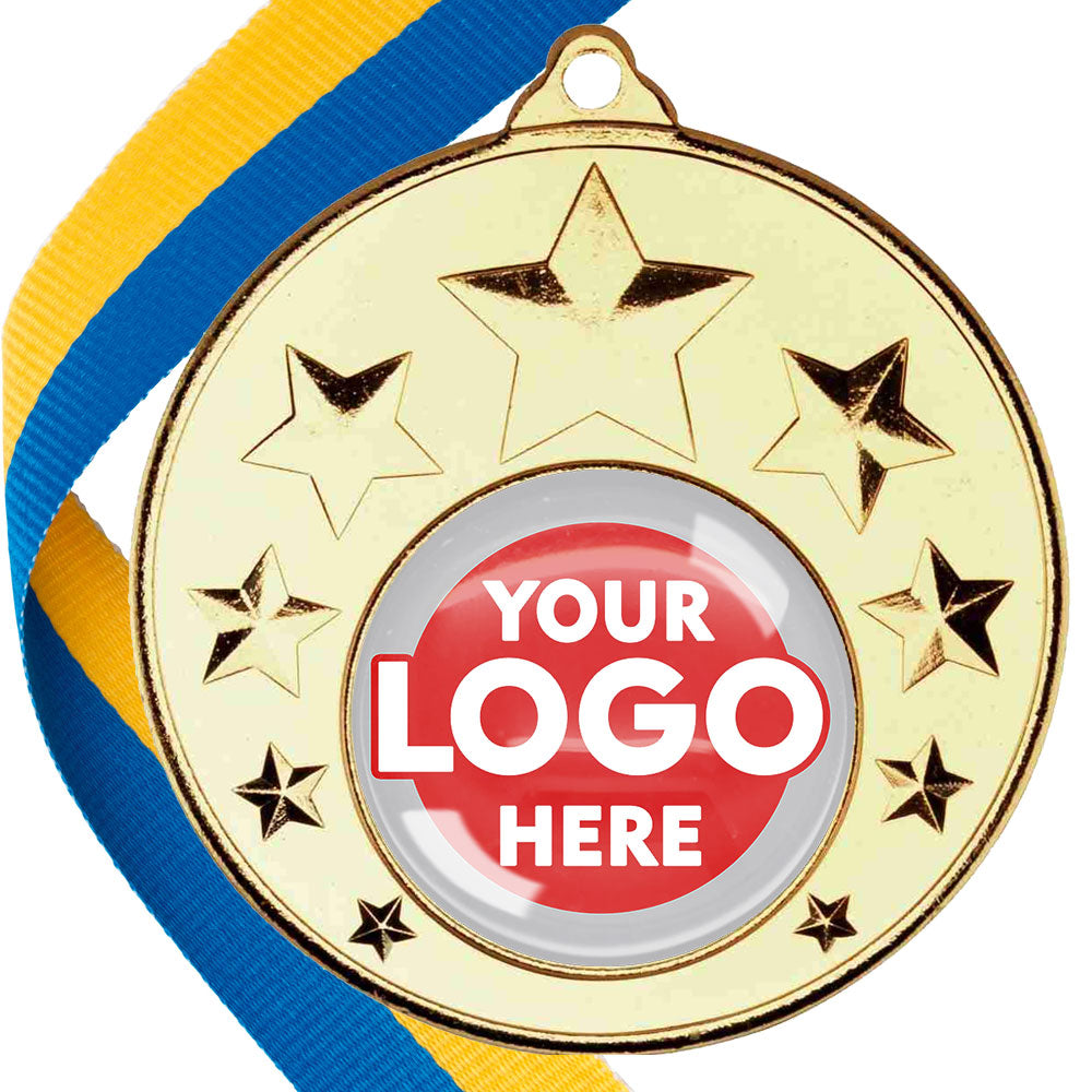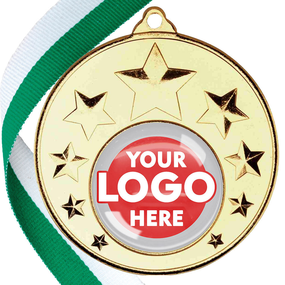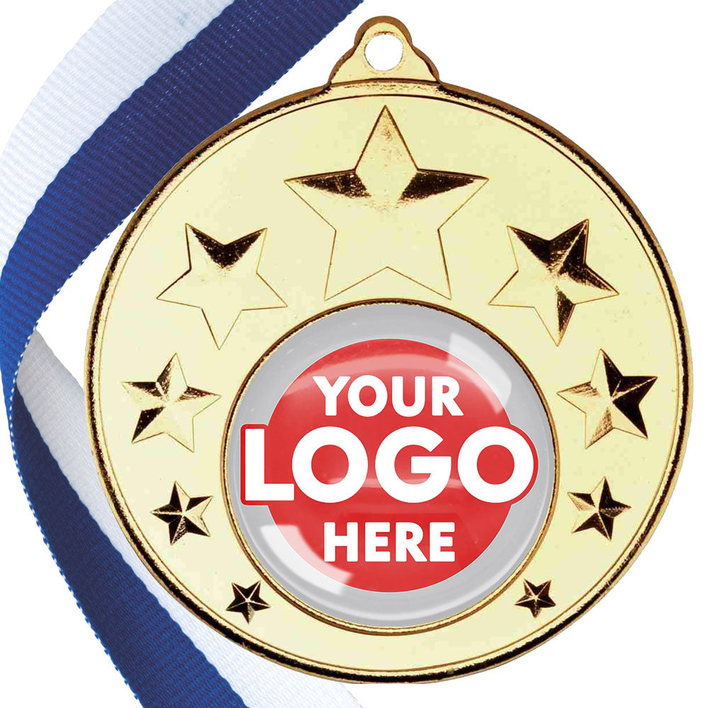 Great quality embossed metal 50mm medal with an intricate design. The price includes your choice of centre and ribbon.