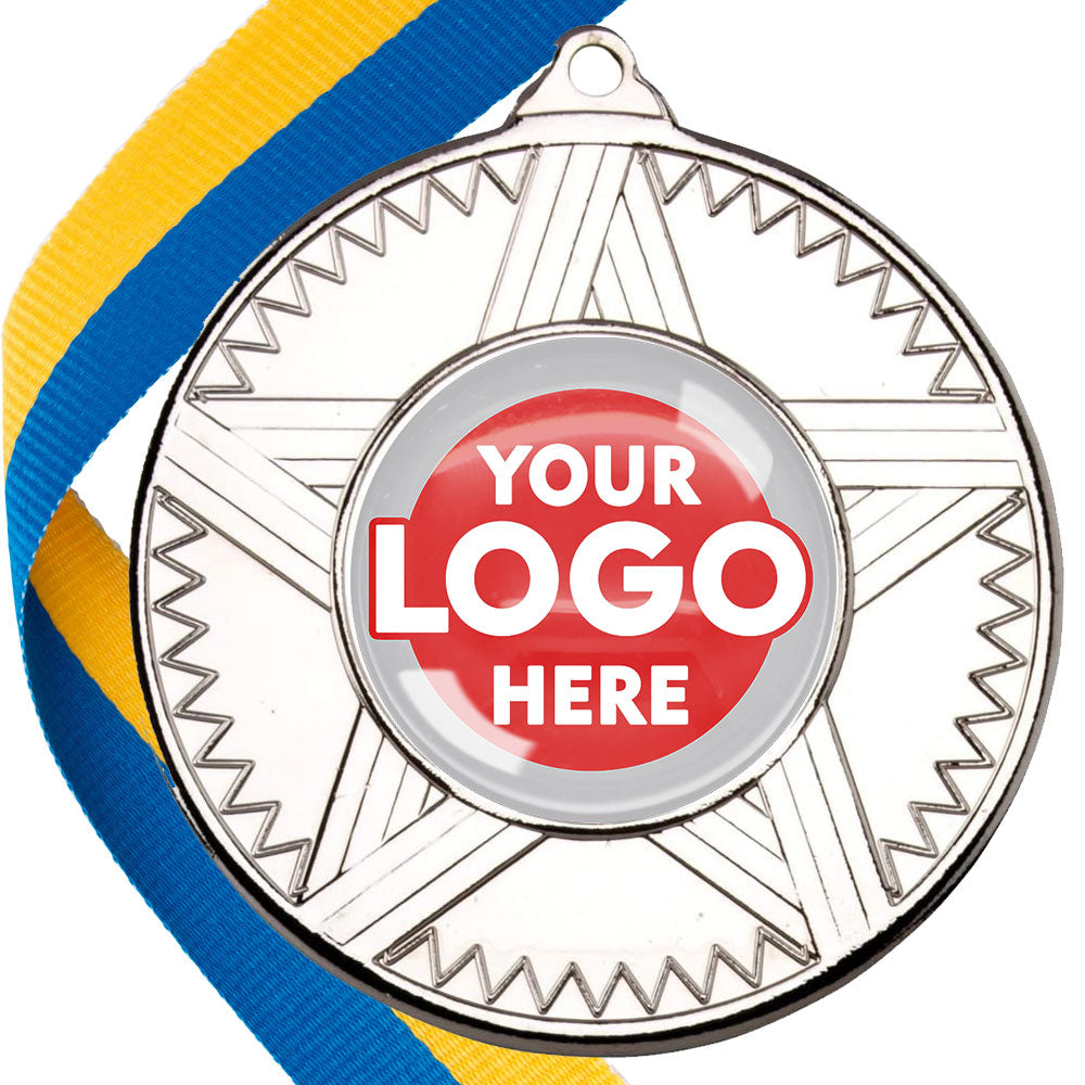 Great quality embossed metal 50mm medal with an intricate design. The price includes your choice of centre and ribbon.