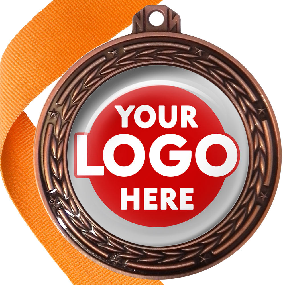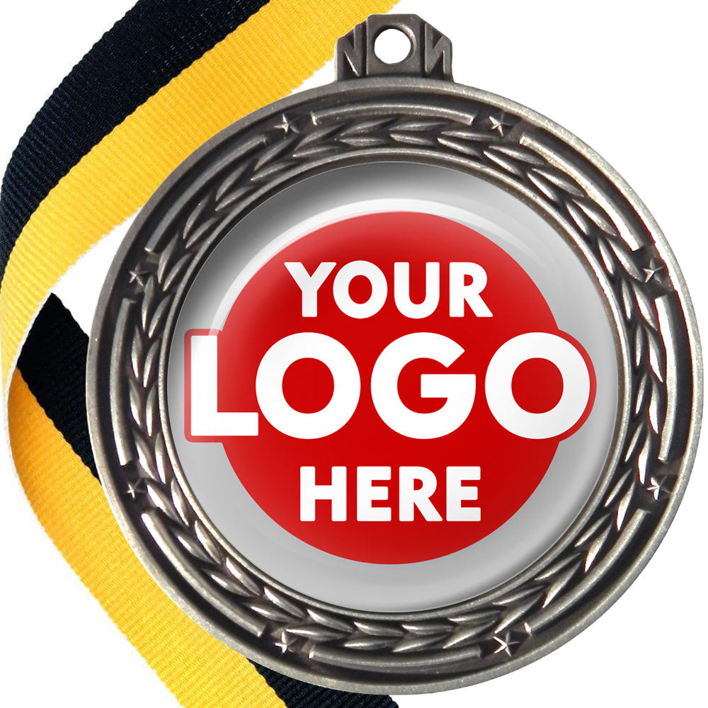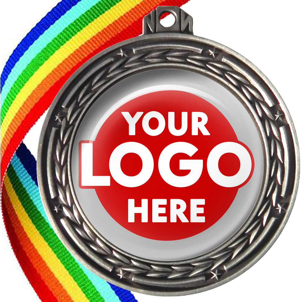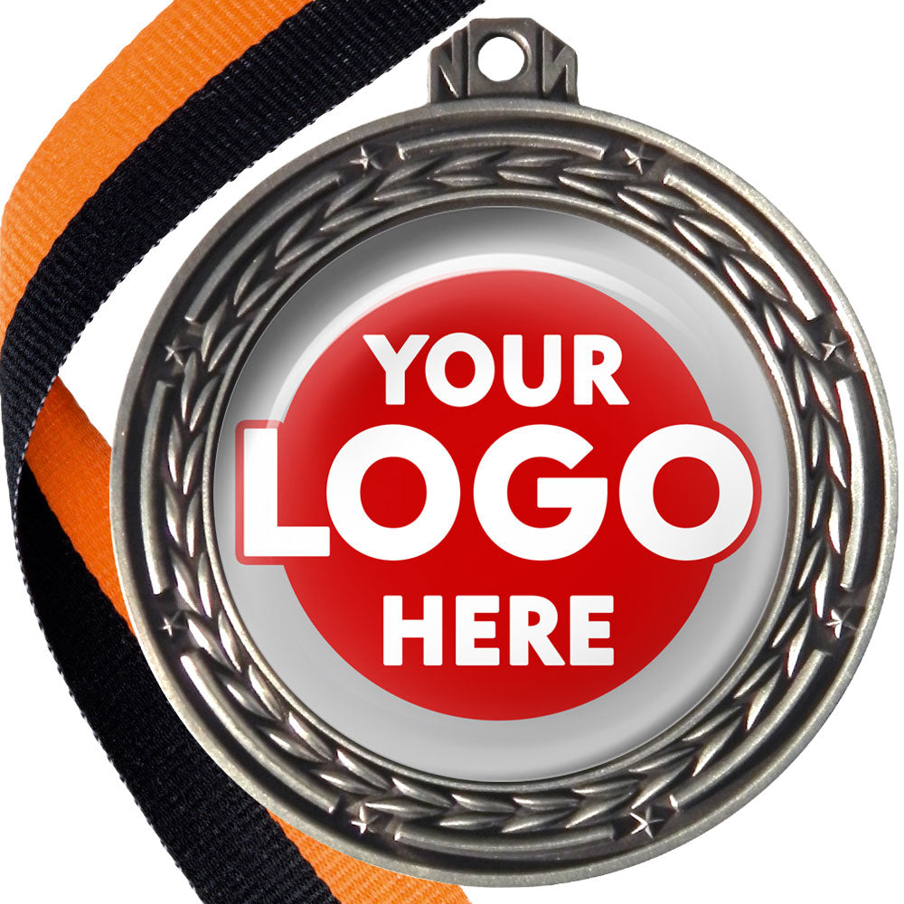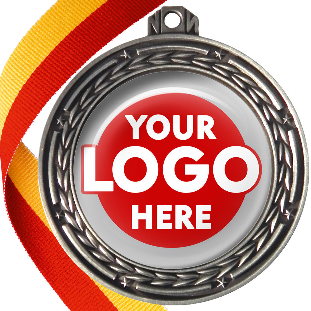 A deluxe metal 70mm medal with stars and arrows as decoration, perfect for a wide range of awards and events. Available in gold, silver or bronze finish, and comes with your choice of coloured ribbon attached.