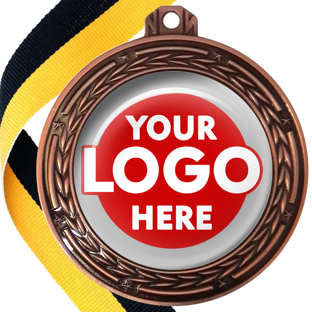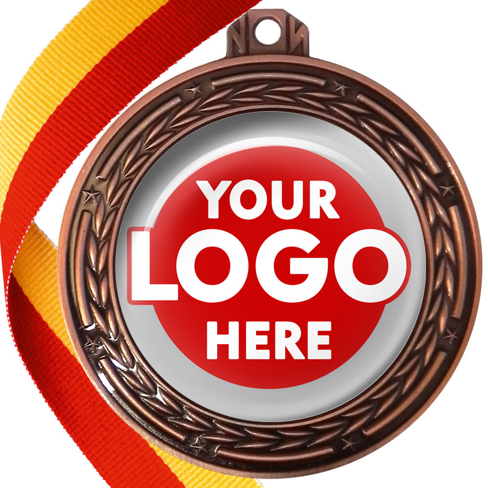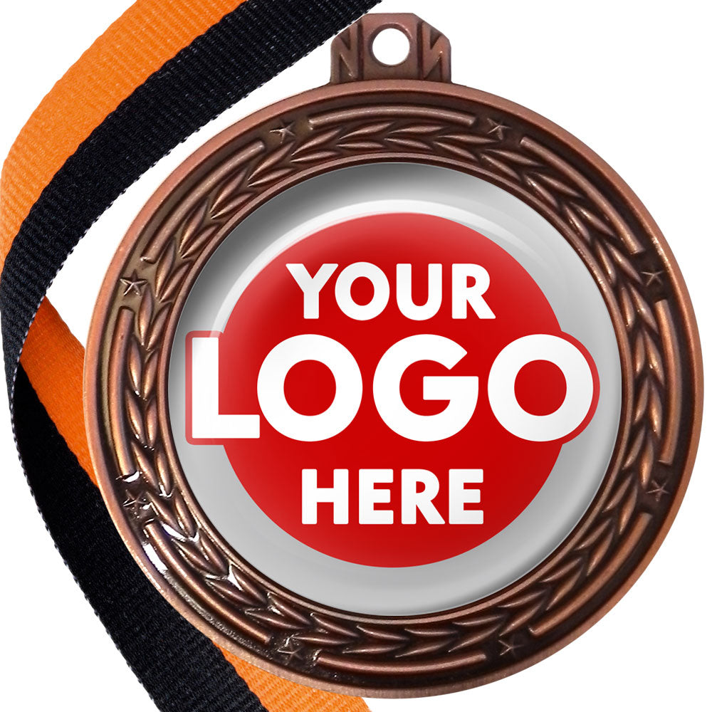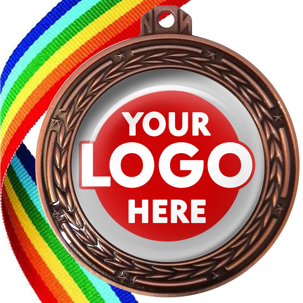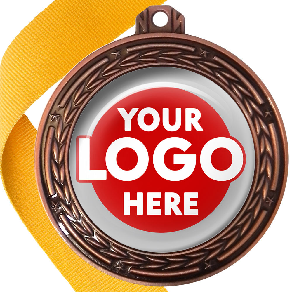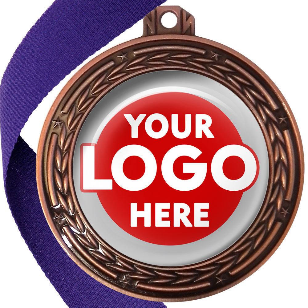 A deluxe metal 70mm medal with stars and arrows as decoration, perfect for a wide range of awards and events. Available in gold, silver or bronze finish, and comes with your choice of coloured ribbon attached.