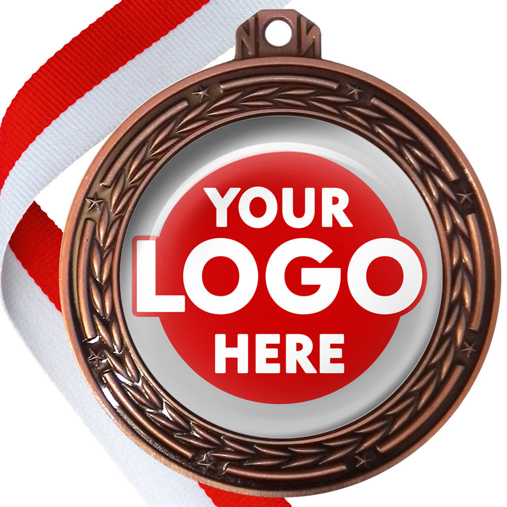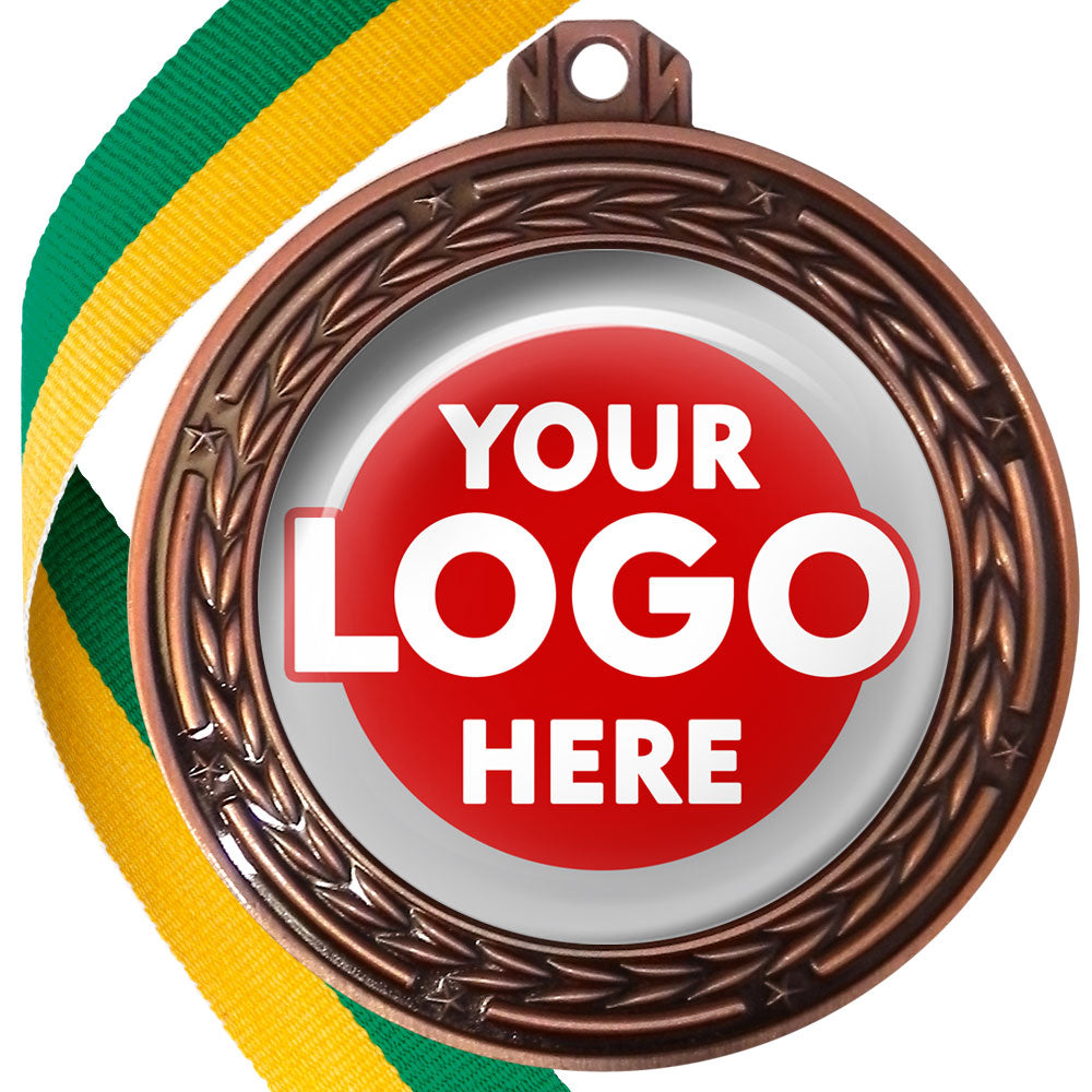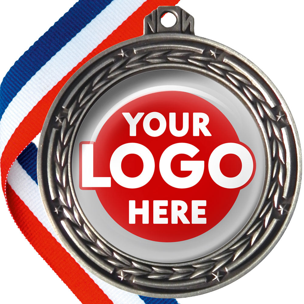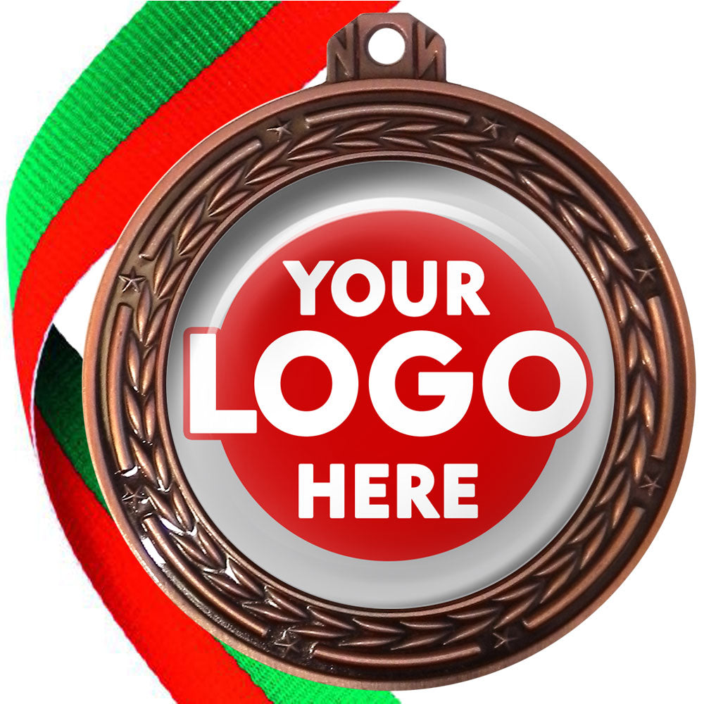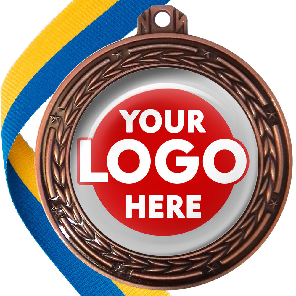 A deluxe metal 70mm medal with stars and arrows as decoration, perfect for a wide range of awards and events. Available in gold, silver or bronze finish, and comes with your choice of coloured ribbon attached.