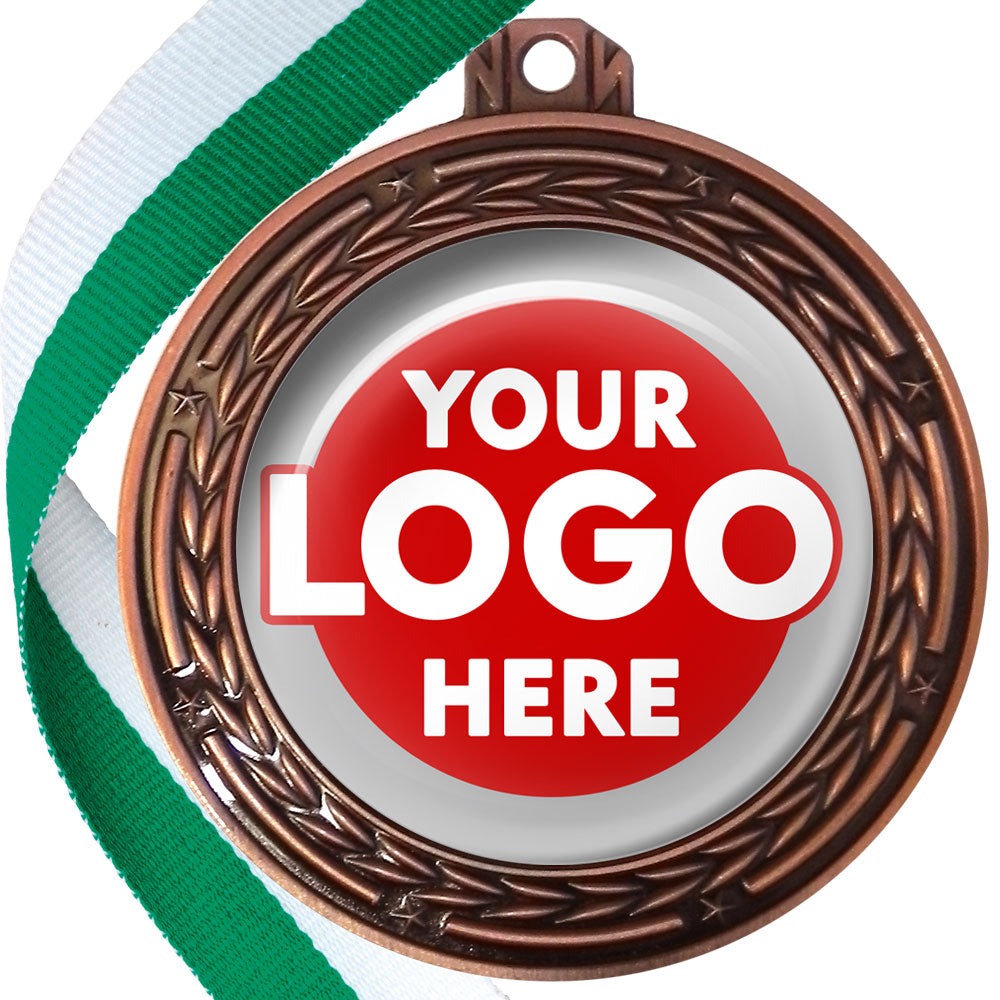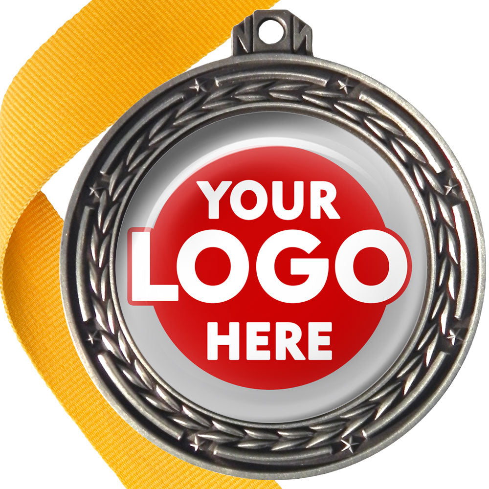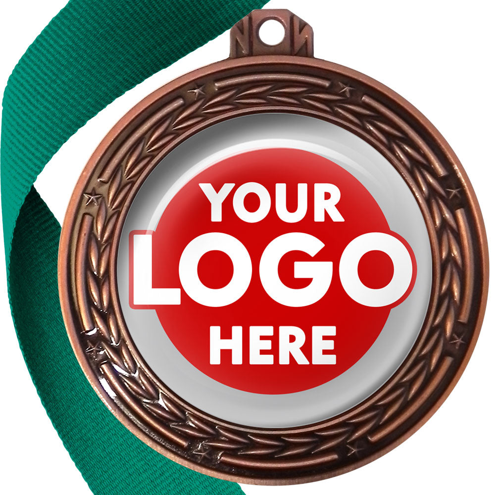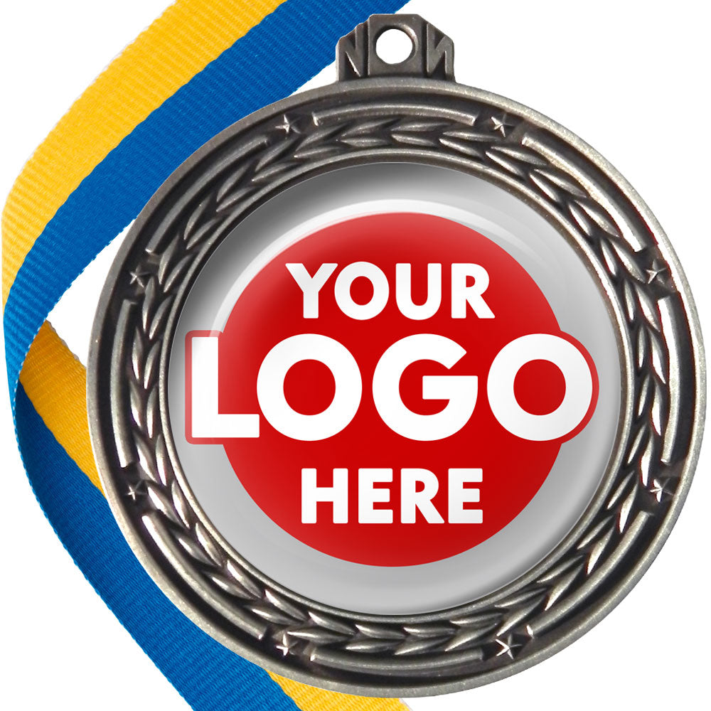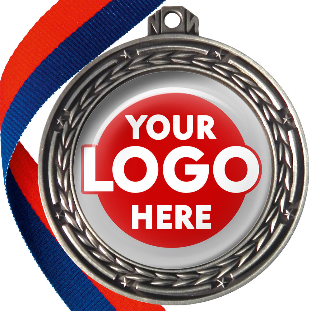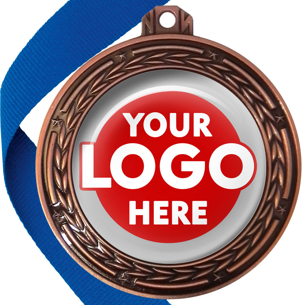 A deluxe metal 70mm medal with stars and arrows as decoration, perfect for a wide range of awards and events. Available in gold, silver or bronze finish, and comes with your choice of coloured ribbon attached.