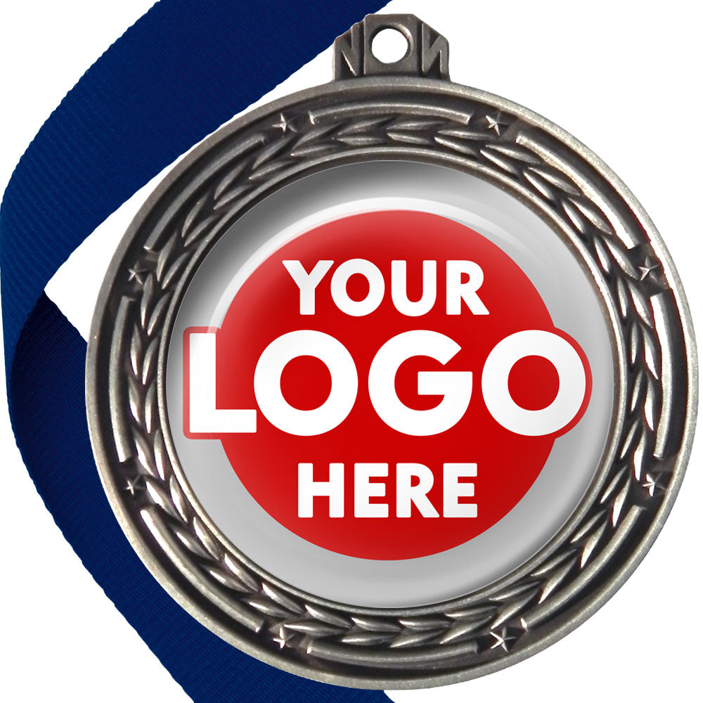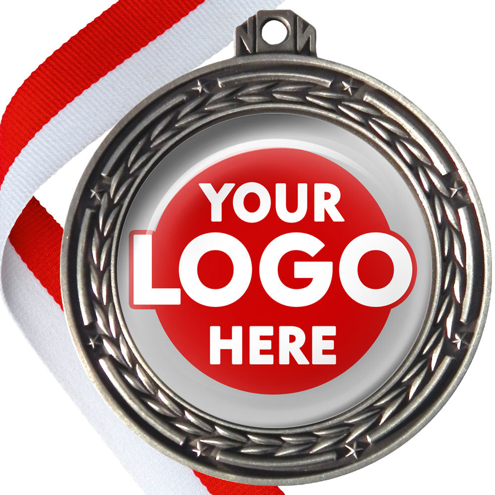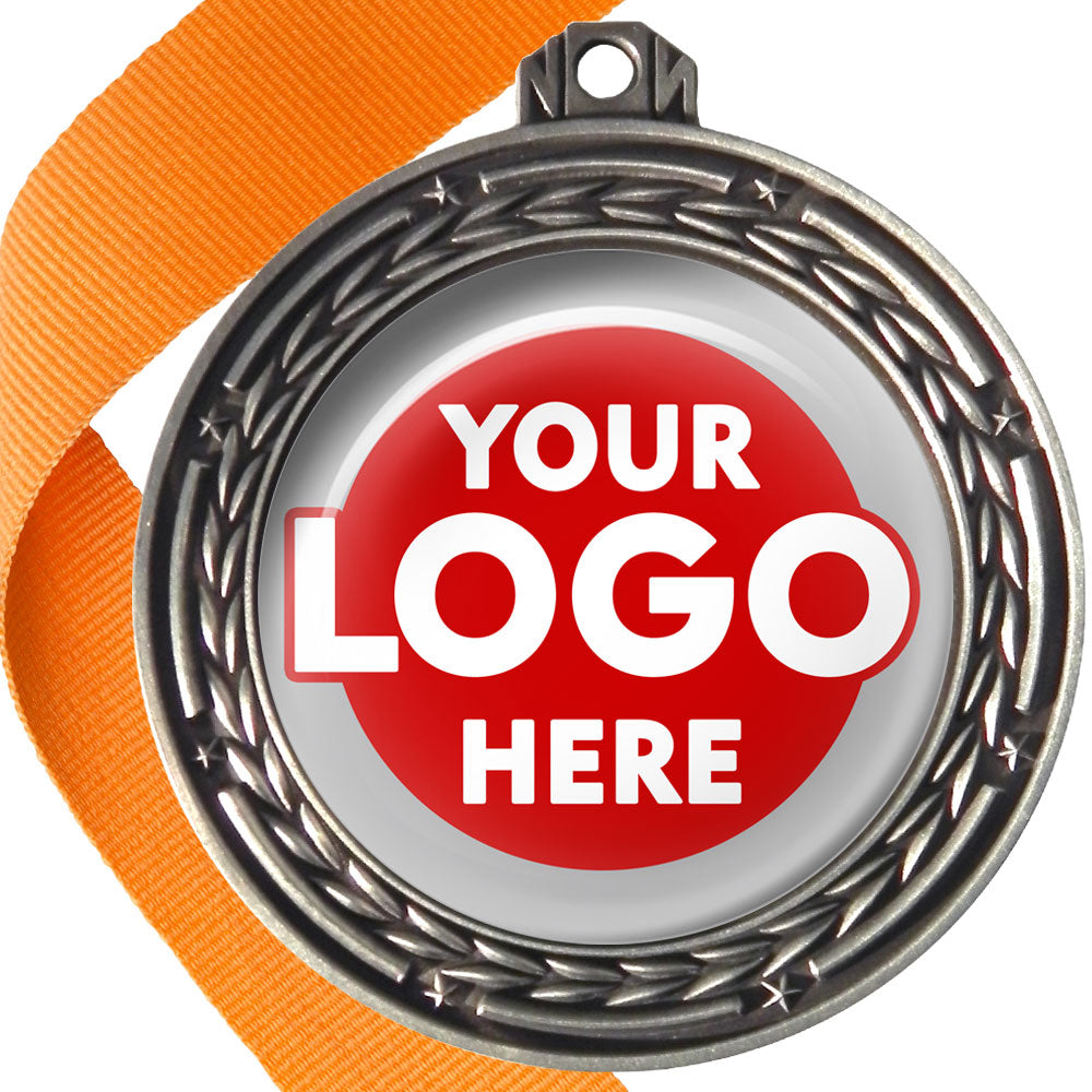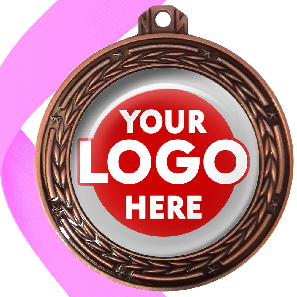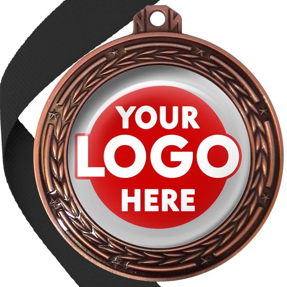 A deluxe metal 70mm medal with stars and arrows as decoration, perfect for a wide range of awards and events. Available in gold, silver or bronze finish, and comes with your choice of coloured ribbon attached.