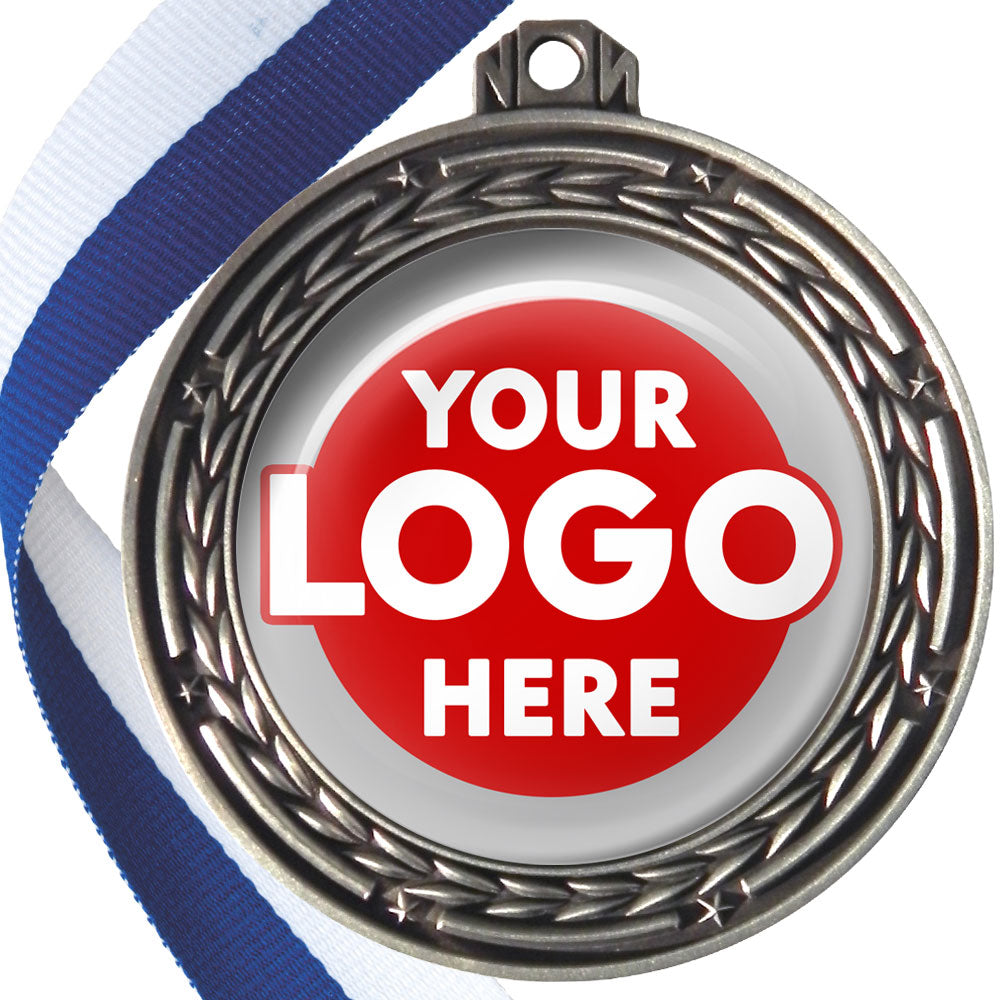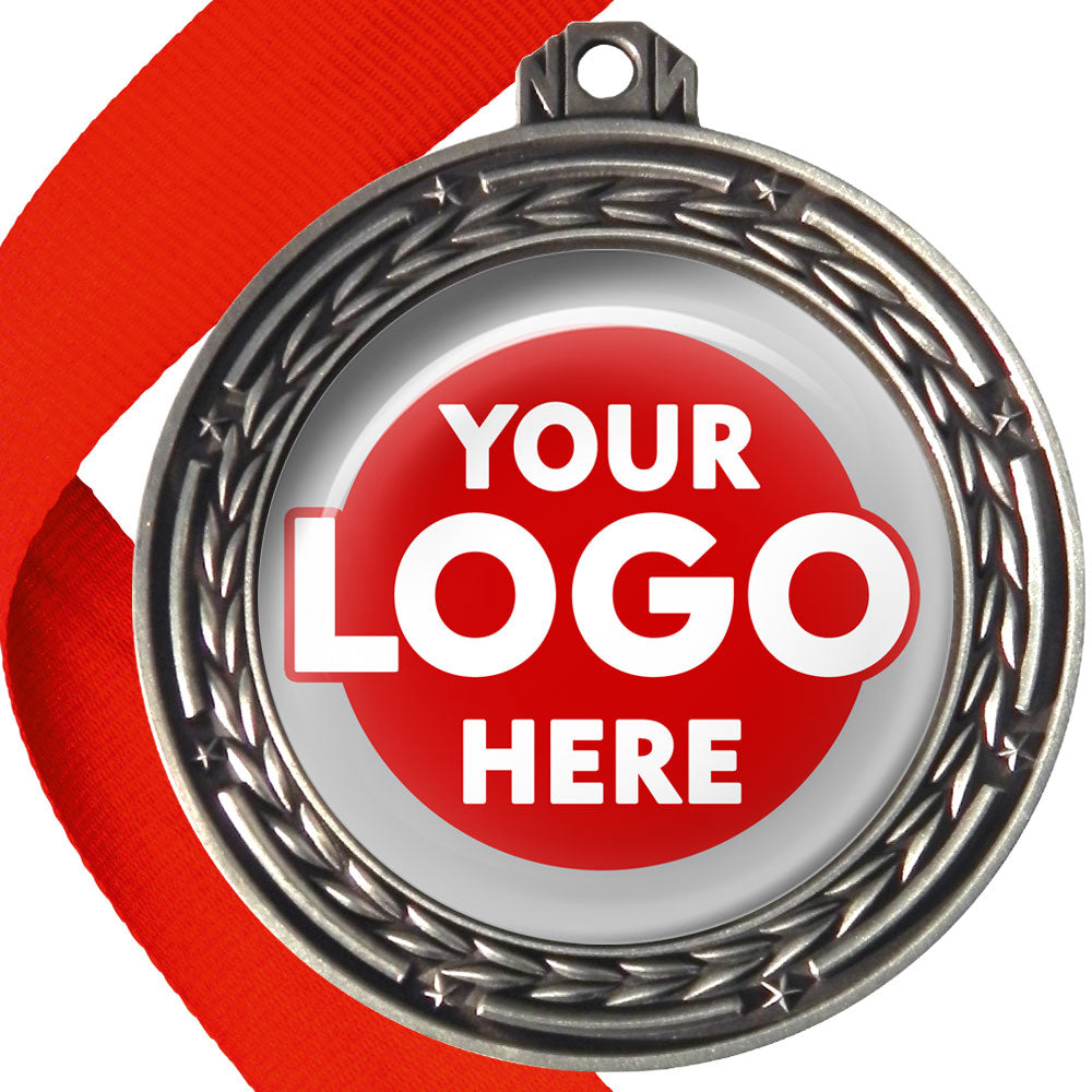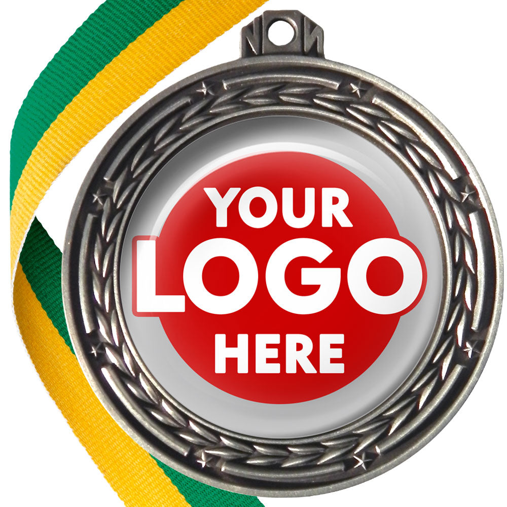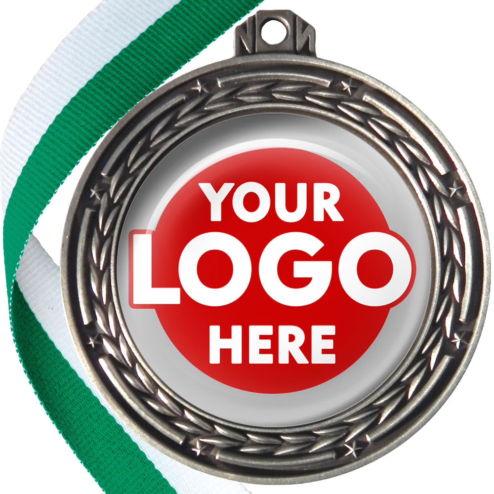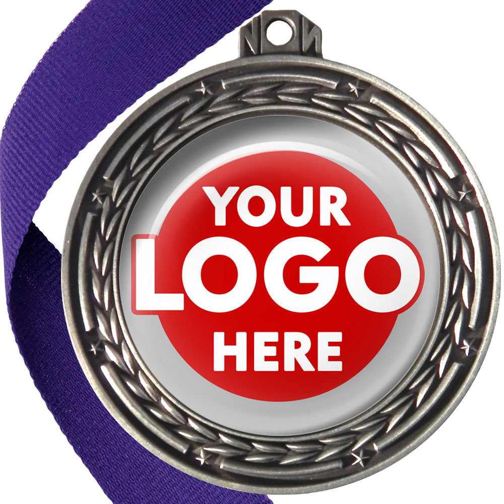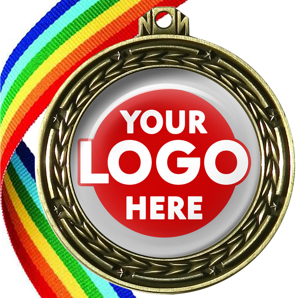A deluxe metal 70mm medal with stars and arrows as decoration, perfect for a wide range of awards and events. Available in gold, silver or bronze finish, and comes with your choice of coloured ribbon attached.