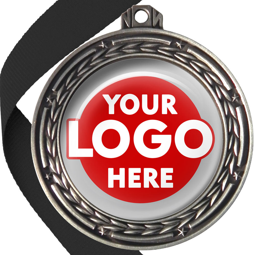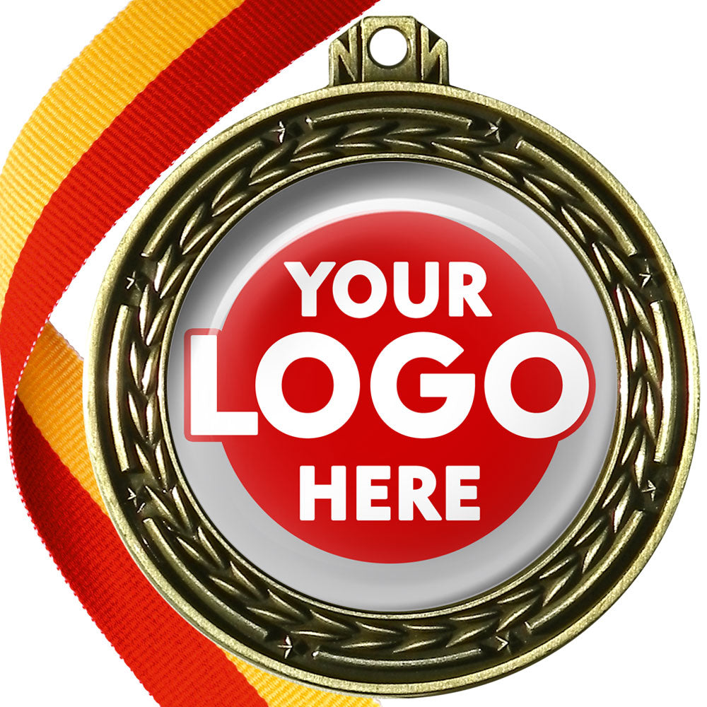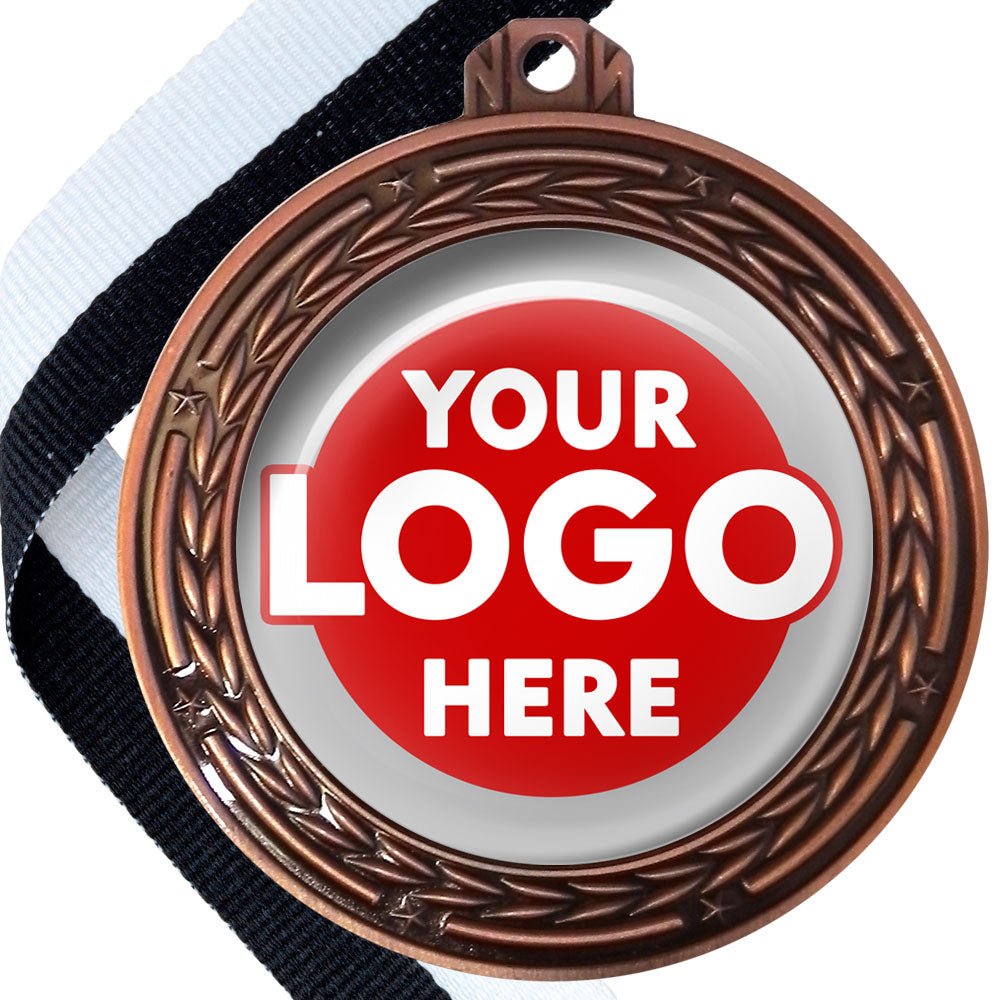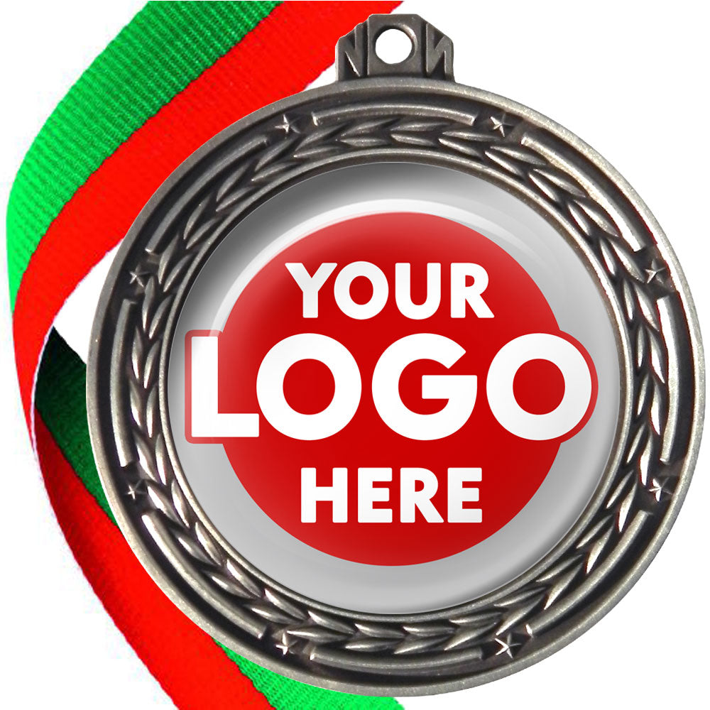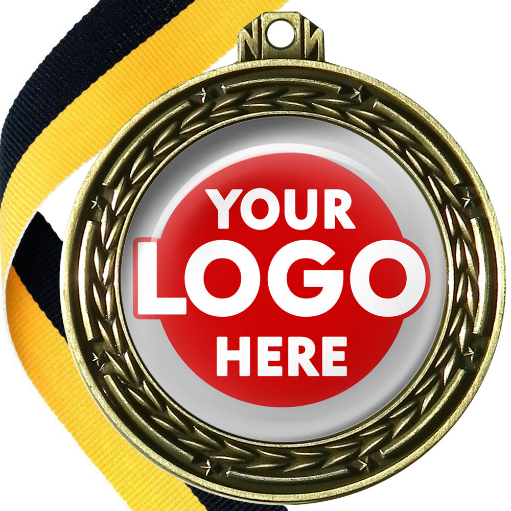 A deluxe metal 70mm medal with stars and arrows as decoration, perfect for a wide range of awards and events. Available in gold, silver or bronze finish, and comes with your choice of coloured ribbon attached.