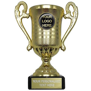 A high quality plastic replica style cup with handles in gold finish. Perfect for a wide range of awards, add a free text plate & choice of custom/stock insert to personalise.
