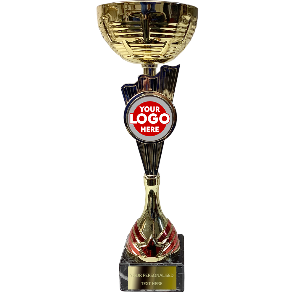 Experience the luxurious elegance of our Golden Cup with Red Decorative Elements. Crafted with high-quality materials, this cup features intricate red details that add a touch of sophistication to any sport event.