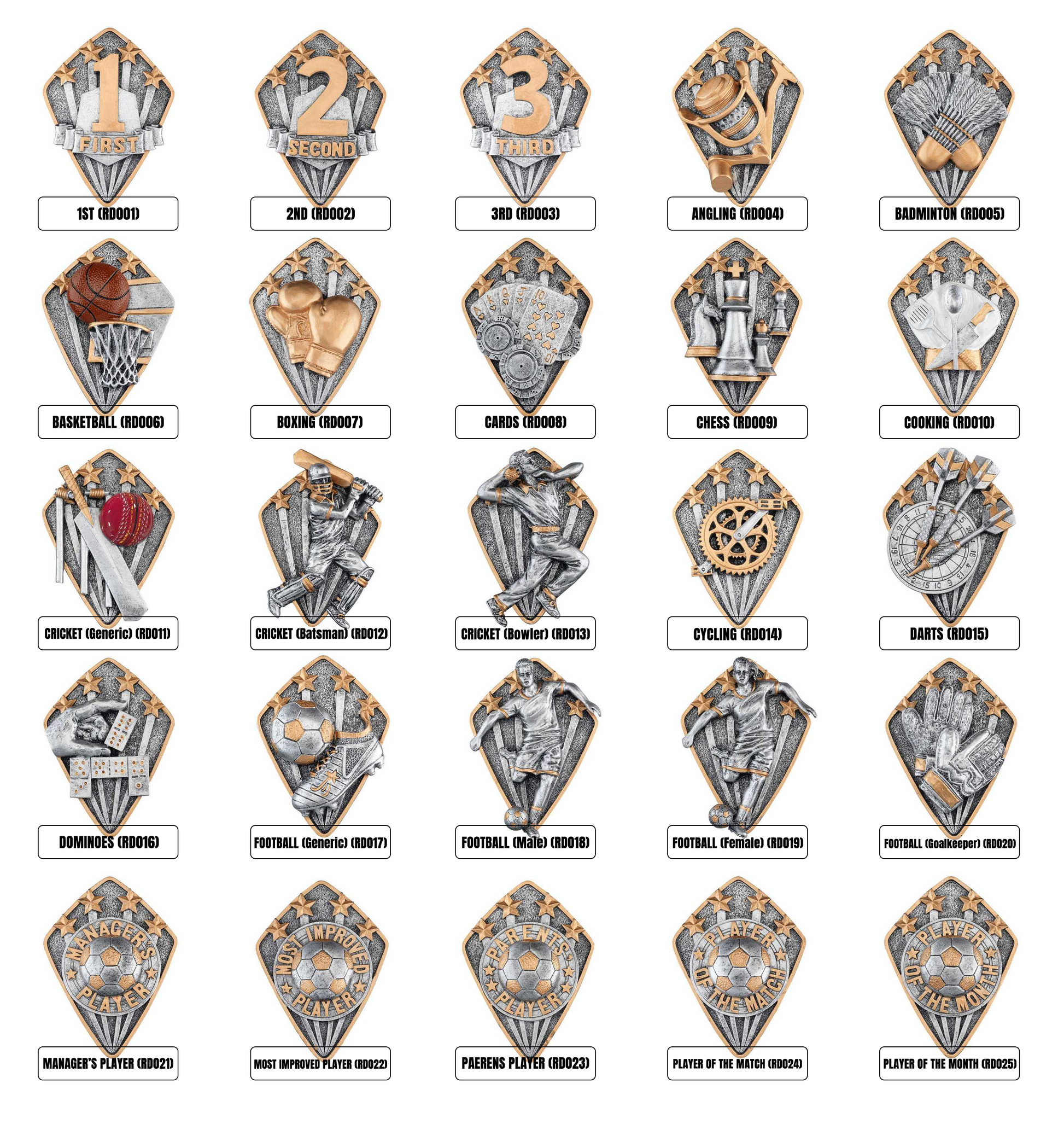 Celebrate achievement in any sport with this versatile Multi-Sport Trophy Award, featuring a striking diamond-shaped centre disc. Designed for flexibility, this trophy is perfect for a wide range of events. The trophy can be fully customised with your choice of diamond disc, club logo and personalised plate, making it a unique and meaningful award for every sport event.