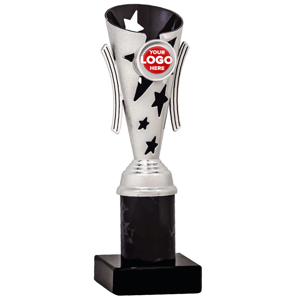 Star Design Tube Trophy (Silver/Black) - 6 sizes available