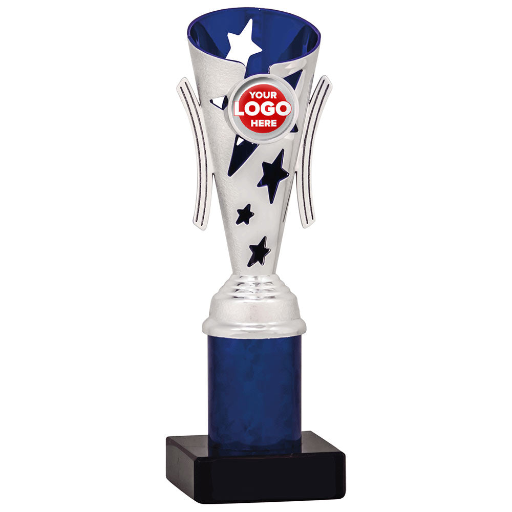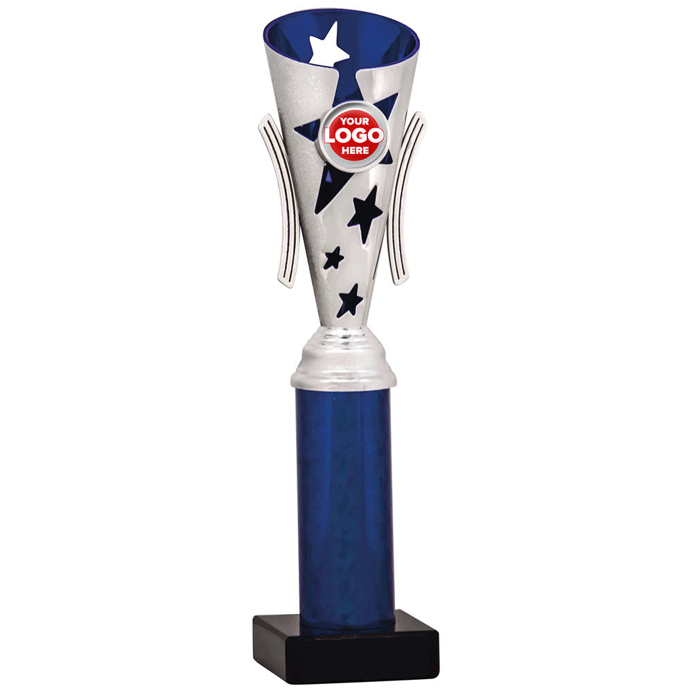 Star Design Tube Trophy (Silver/Blue) - 6 sizes available