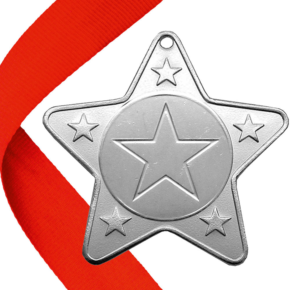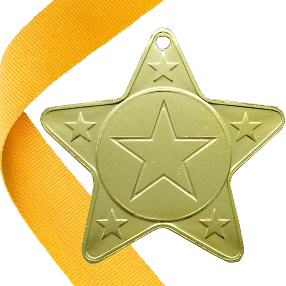 A high quality star shape metal medal with choice of FREE ribbon.
