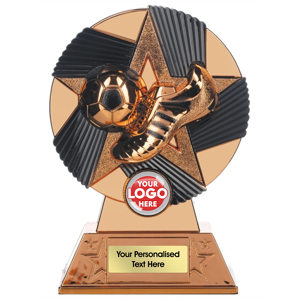 Present your winners with the striking Two Tone Boot & Ball Football Trophy – Bronze – a modern and stylish award designed to celebrate football achievement at any level. Featuring a detailed football boot striking a ball, this contemporary two-tone design creates a bold visual impact, making it an eye-catching centrepiece for presentations and ceremonies.