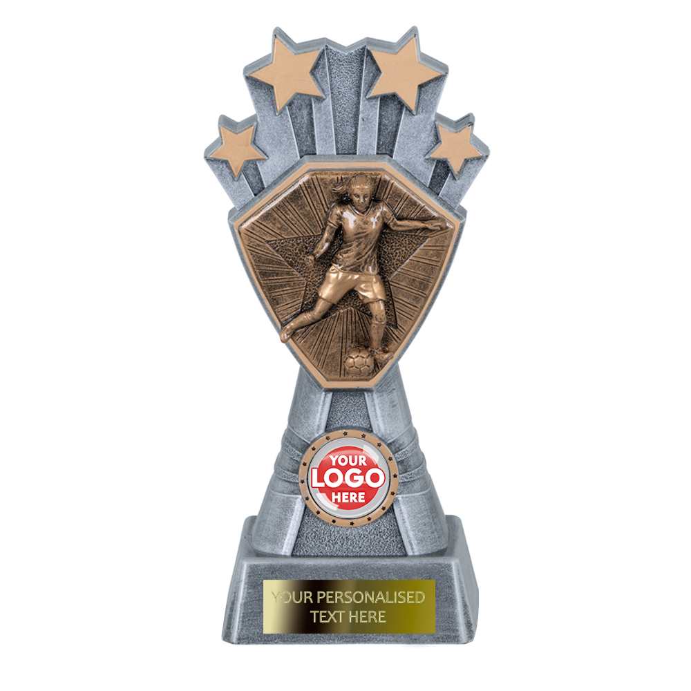A attractive and stylish high quality silver & gold womens football award. Perfect for a wide range of awards and events. Add a FREE logo/centre insert and FREE engraved metal plate to personalise.